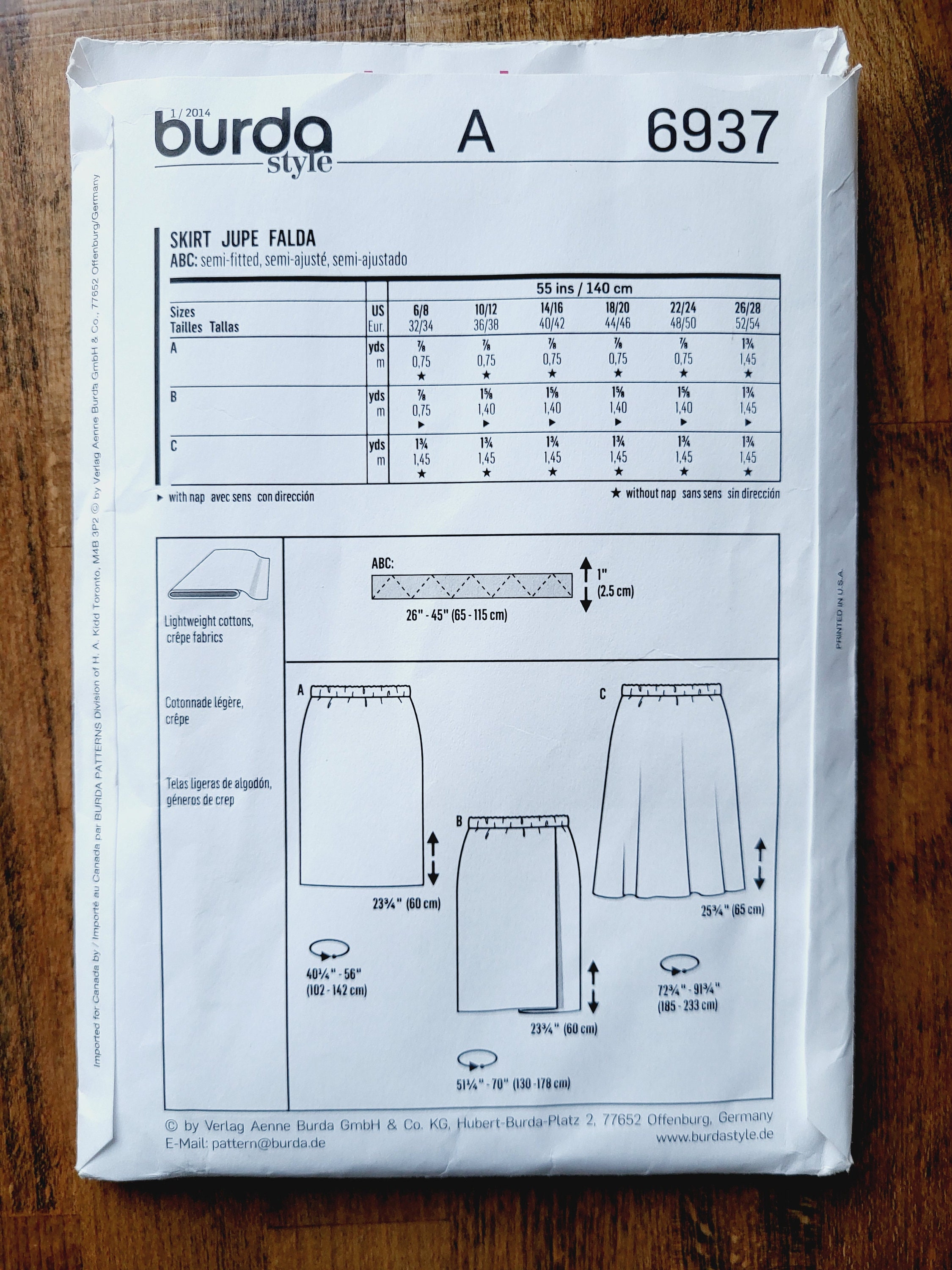 Burda 6937 Womens Skirt Pattern Short Skirt Pattern Wrap Etsy